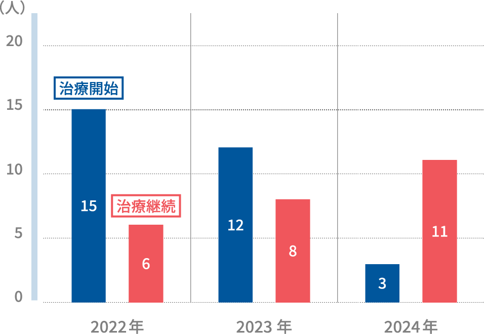しかし、病気の早期発見・早期治療にはつなげることができています。年々、治療継続者の割合が増えているのは、治療に時間がかかっていることが予測でき、改めて早期発見・早期治療の大切さが伺える結果となりました。